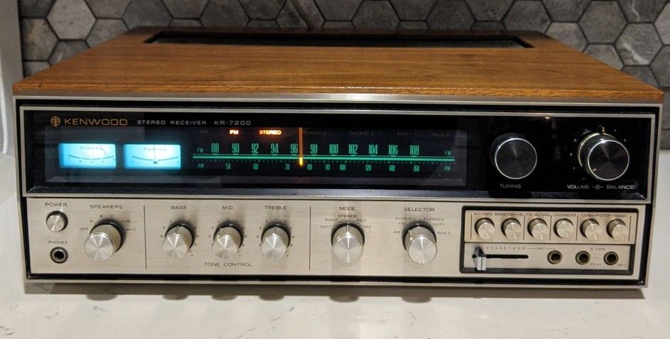 Good condition. Works good Sounds good. This model was Kenwood's top of the line receiver in the early 1970's. Good power, rated at 55 watts per channel. Features triple tone controls, 2 phono inputs, and 3 sets of speaker outputs. The outer wood cabinet has some minor flaws, but is overall in good condition. See all the pictures. Located near Burgettstown PA in Weirton WV.