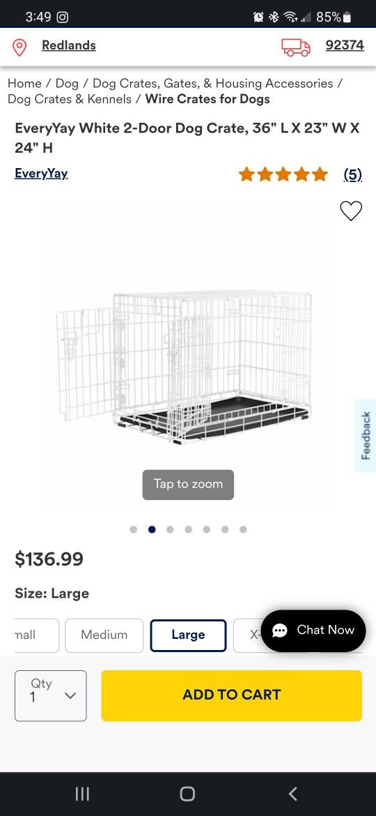 EveryYay White 2-Door Dog Crate, 36" L X 23" W X 24" H Only used 2 months, I'll throw in the bowls you can attach to the crate and a feeding tray Pickup in Redlands, CASH ONLY, NO LOWBALLS