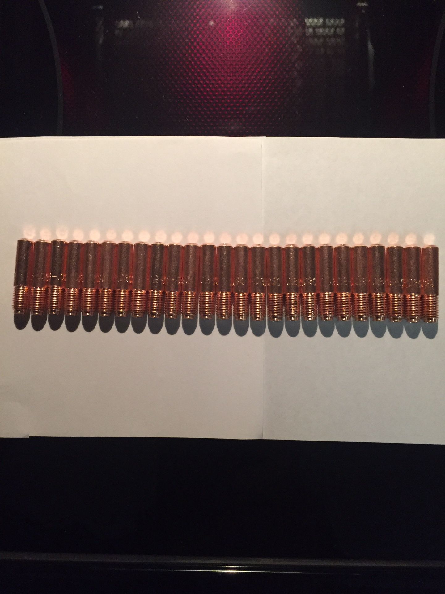 Total of 25 new, never used contact tips for mig welder. The size is .030. They will fit Hobart or Miller mig welders. These are fresh and undamaged. Ready to use and a good price
