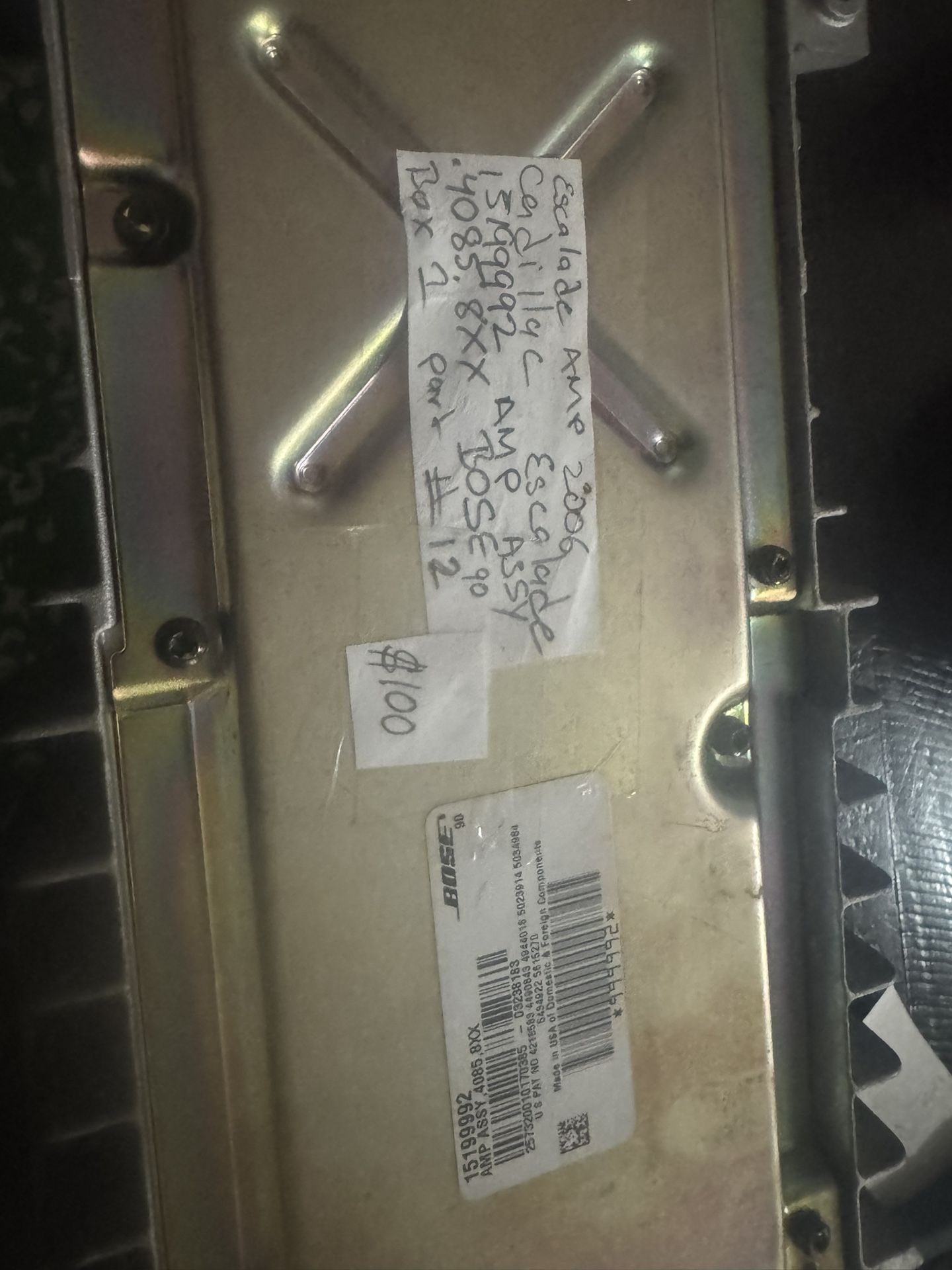 For sale amp speakers oem amp out of a 2004 Escalade amp assy. .4085 .8xx. Bose 90. 1(contact info removed) amp OEM part in good working conditions box1 part# 12 located in Hesperia ca I can meet you in San Bernardino area or I can mail it to you π¦βοΈπ π° cash π· zelle π΅ $100