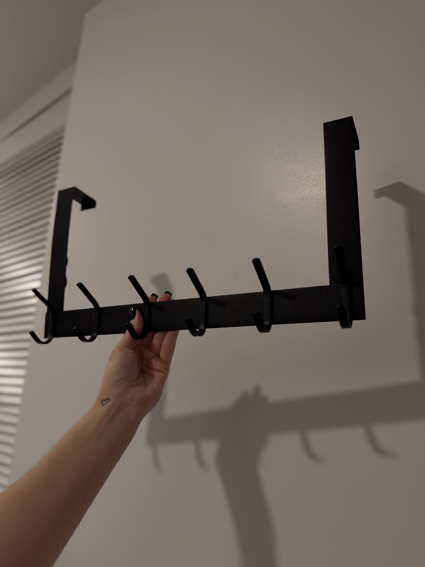 • Condition: New • Material: Heavy-duty metal • Color: Matte Black • Fits standard interior doors • Soft pads on the back to protect door surface • No installation required — just hang it on the door • Size: 16 inches height, 20 inches width (approx.)