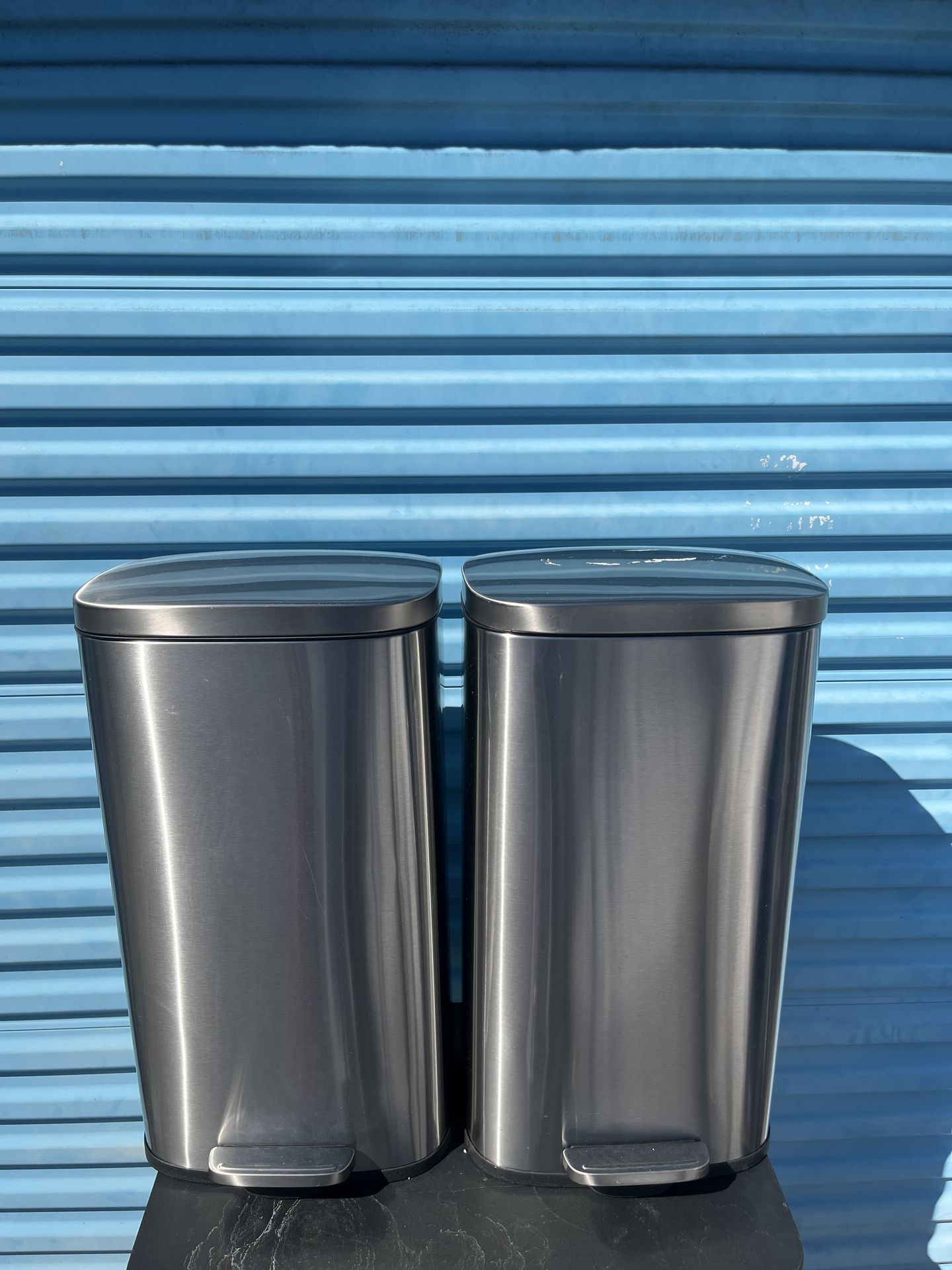 Silver aluminum garbage cans - never used