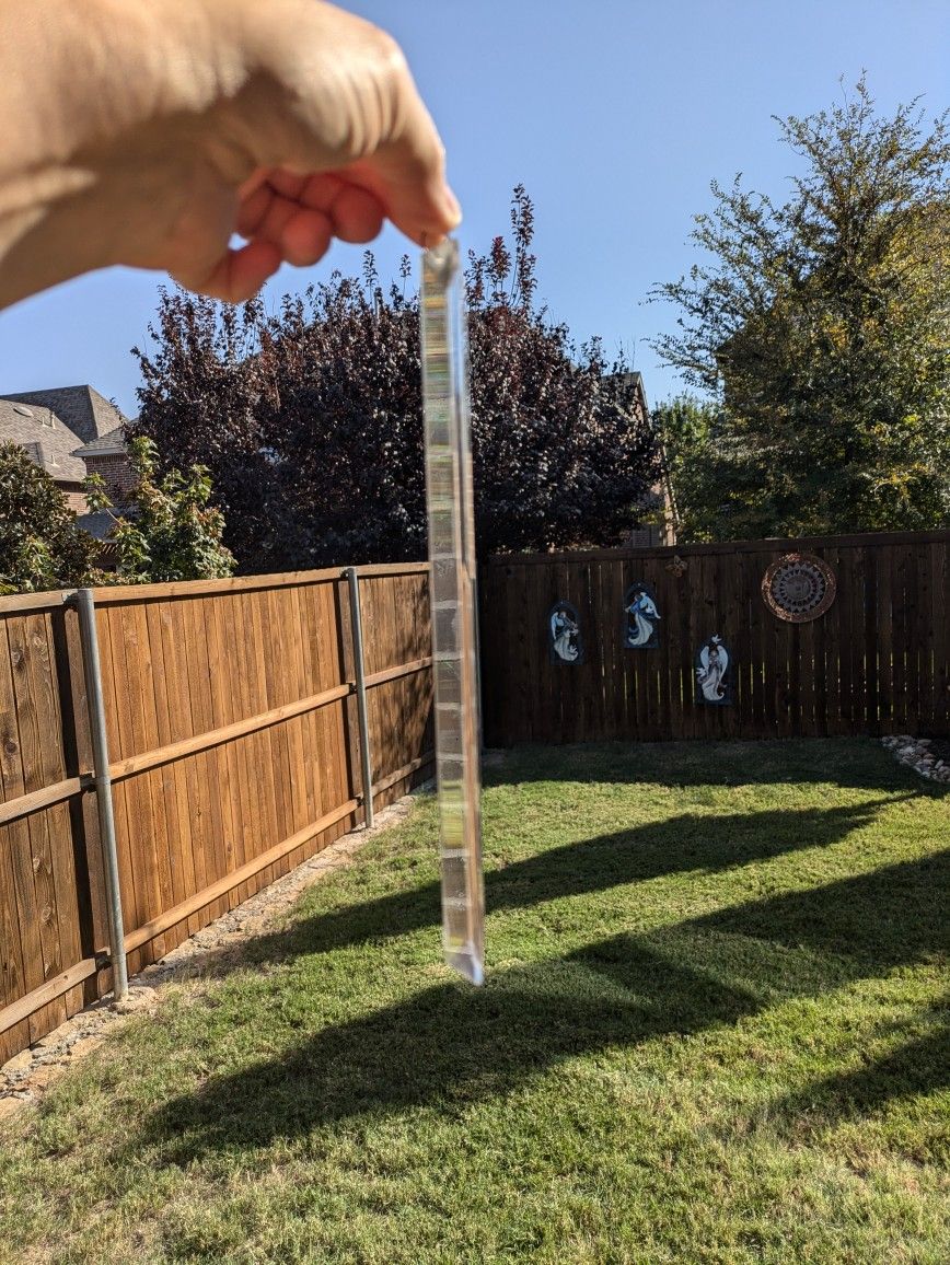 Large glass chandelier prisms with metal hangers. Makes a great craft project for glass and crystal sun catchers. Each is 10 inches long and 1 inch wide. The sided. Have over 50. Each is 5$ if you buy 10 or more, will drop price to$3. Non smoking home.