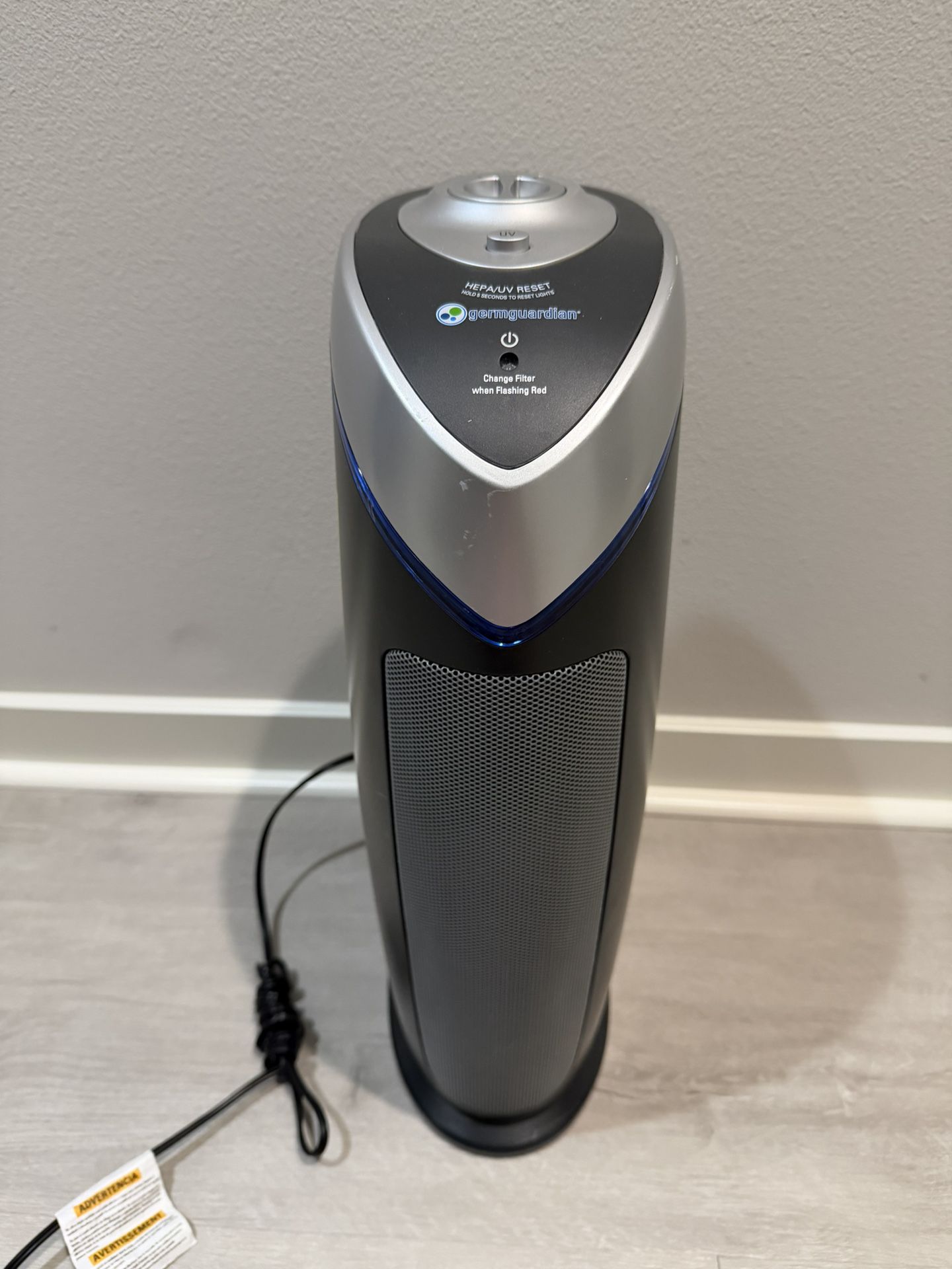 HEPA Air Purifier for Home, Large Rooms - 743 Sq. Ft. with HEPA Air Filter, UV-C Light & Odor Reduction Germguardian brand Air purifier with Hepa UV for extra air cleaning. Barely used. Original owner, used in no pet, no smoking home. Pick up Bellevue / Issaquah.