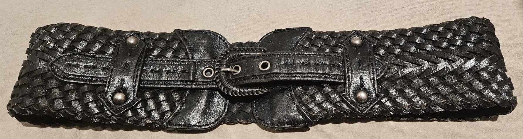 Belgo Lux Women Size (M) Black Wide Leather Belt Weaved Braided