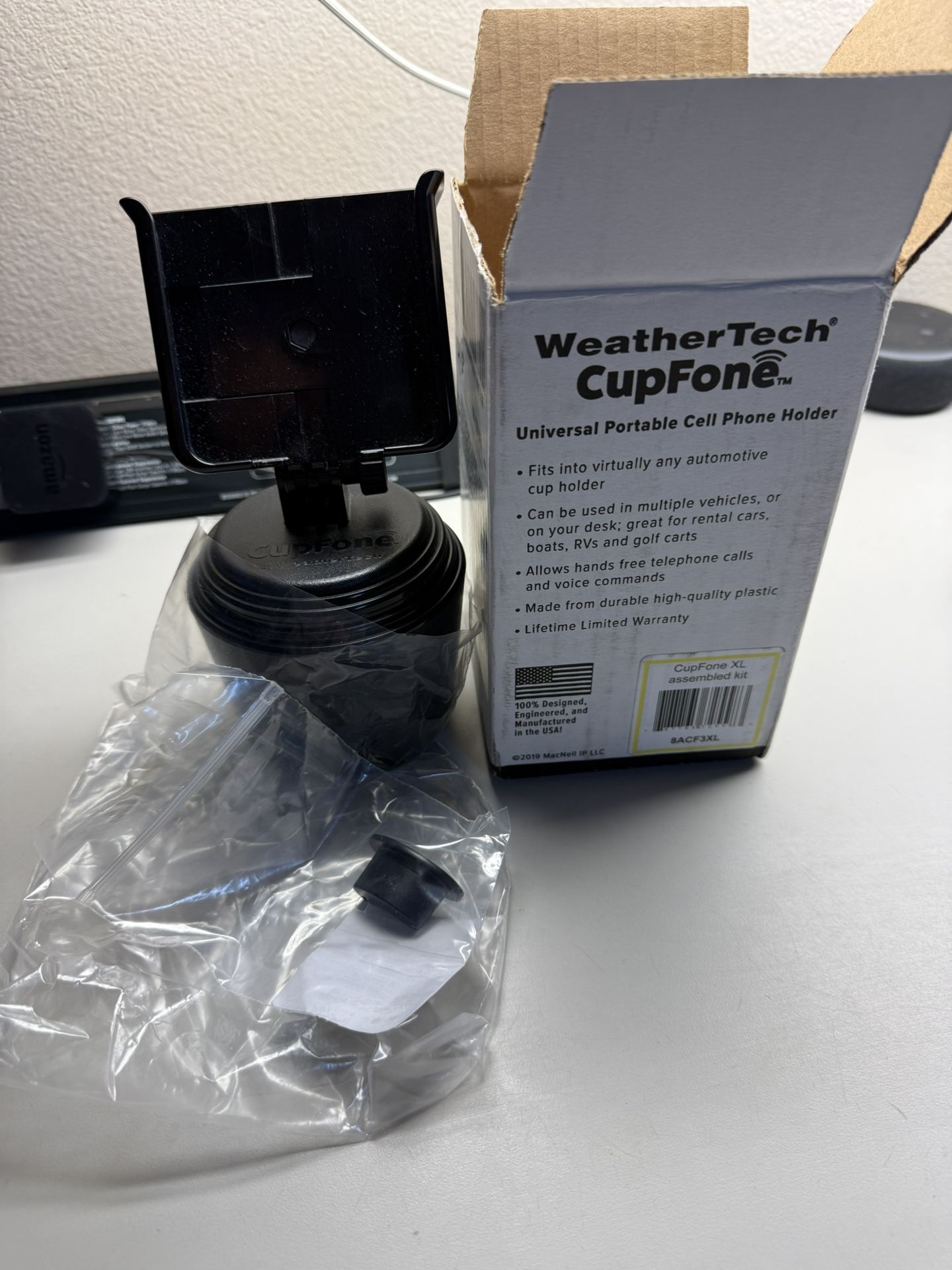 Original cup holder with all sized bases and changer key. Also with vibration strap. This is a deal. It’s like new and has all the parts plus the vibration ban.