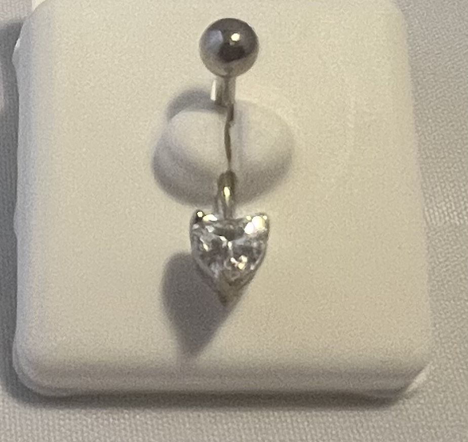 14 gauge white gold 3/8” curved barbell with heart shaped cubic zirconia internally threaded
