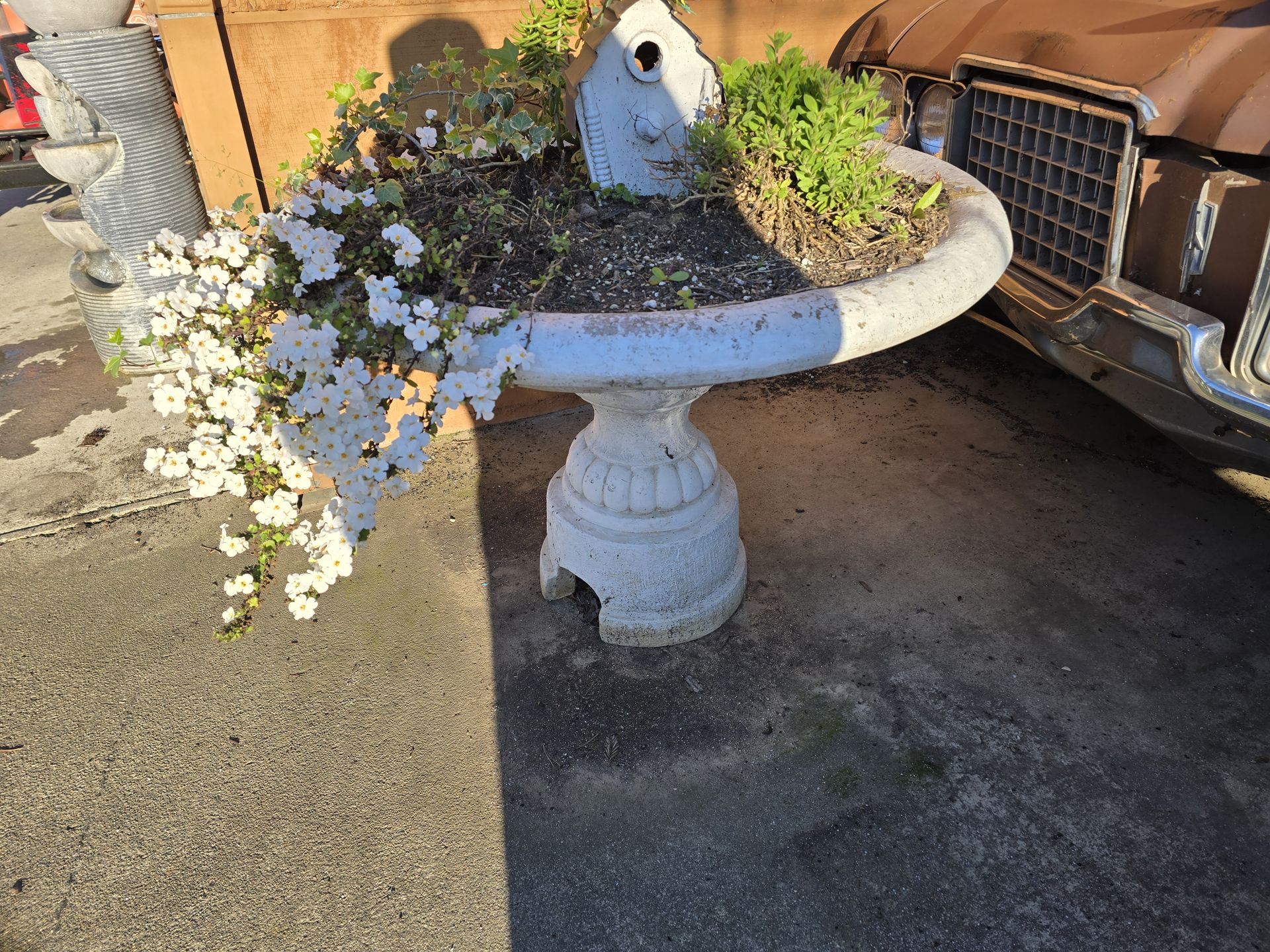 Outdoor Henri Studios 32" Fountain Turned Planter for $25. It's very heavy. It will need two strong people or 3 preferable to load it. We glued the pieces together so they don't separate. *The price is firm, please no offers. *I'm located near the Post Office 161W Elverta Rd in Elverta. I don't deliver, pickup or shipping ONLY. plant, plants, tree, tress,
