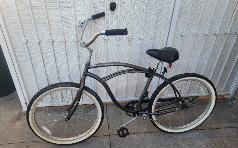 This is a 26-in beach cruiser bike by Firmstrong. The model is Urban. Tires hold air, brakes work good, stickers are excellent: everything ready to ride. See pictures for best description.