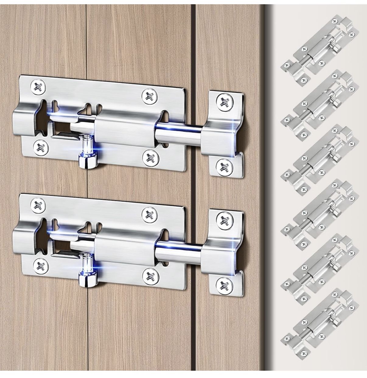 8 Pack Barrel Bolt Latch, Slide Bolt Latch 3 Inches Slide Latch Lock, Thickened Stainless Steel Sliding Lock for Door, Brushed Finish Sliding Bolt Loc