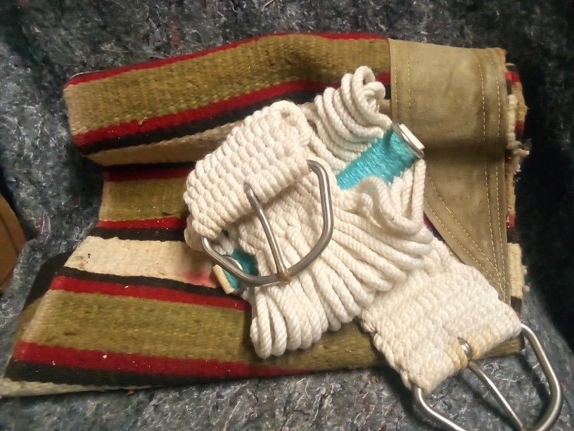 Horse blanket, and white/blue under carriage strap for horse riding, Sattle attachment under carriage strap. Minor rust on buckle. Best offer!!