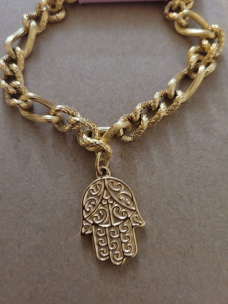 Stainless steel Bracelet with Fatima hand in gold color. Bracelet is NEW.