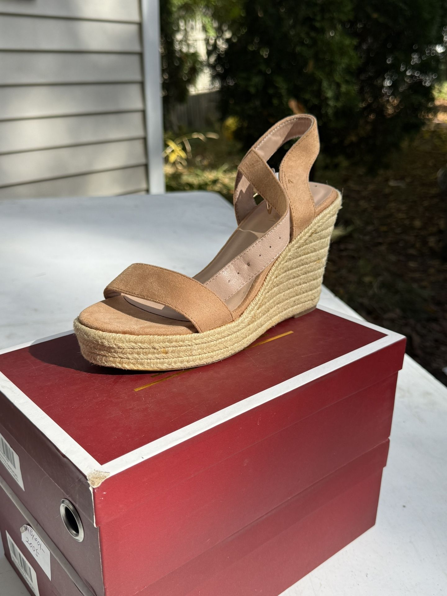 Tan suede wedge sandals with rope detail size 8.5