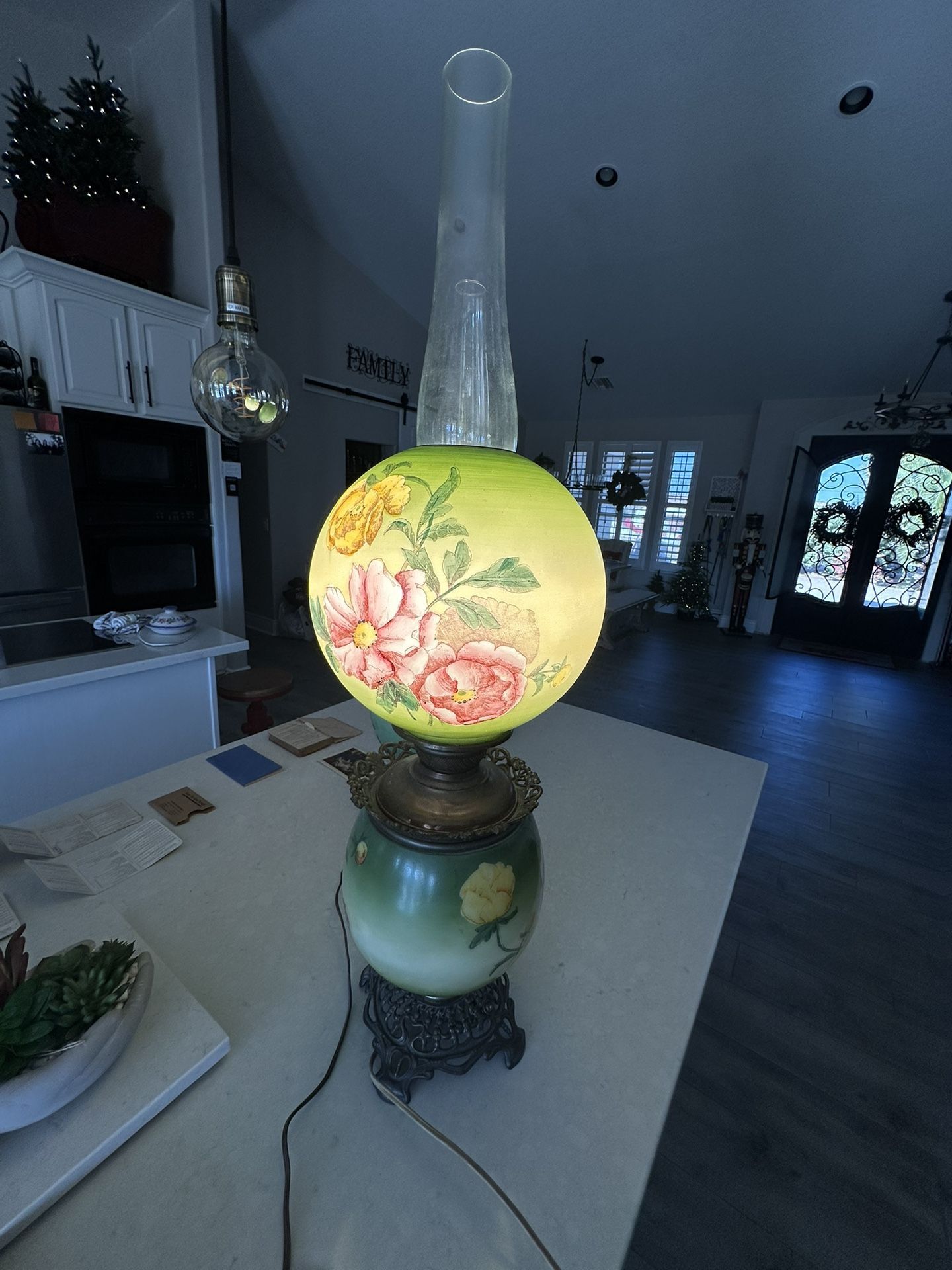 Two absolutely beautiful hurricane style Lamps converted to electric handpainted, beautiful condition Both $250 or 1 for $150