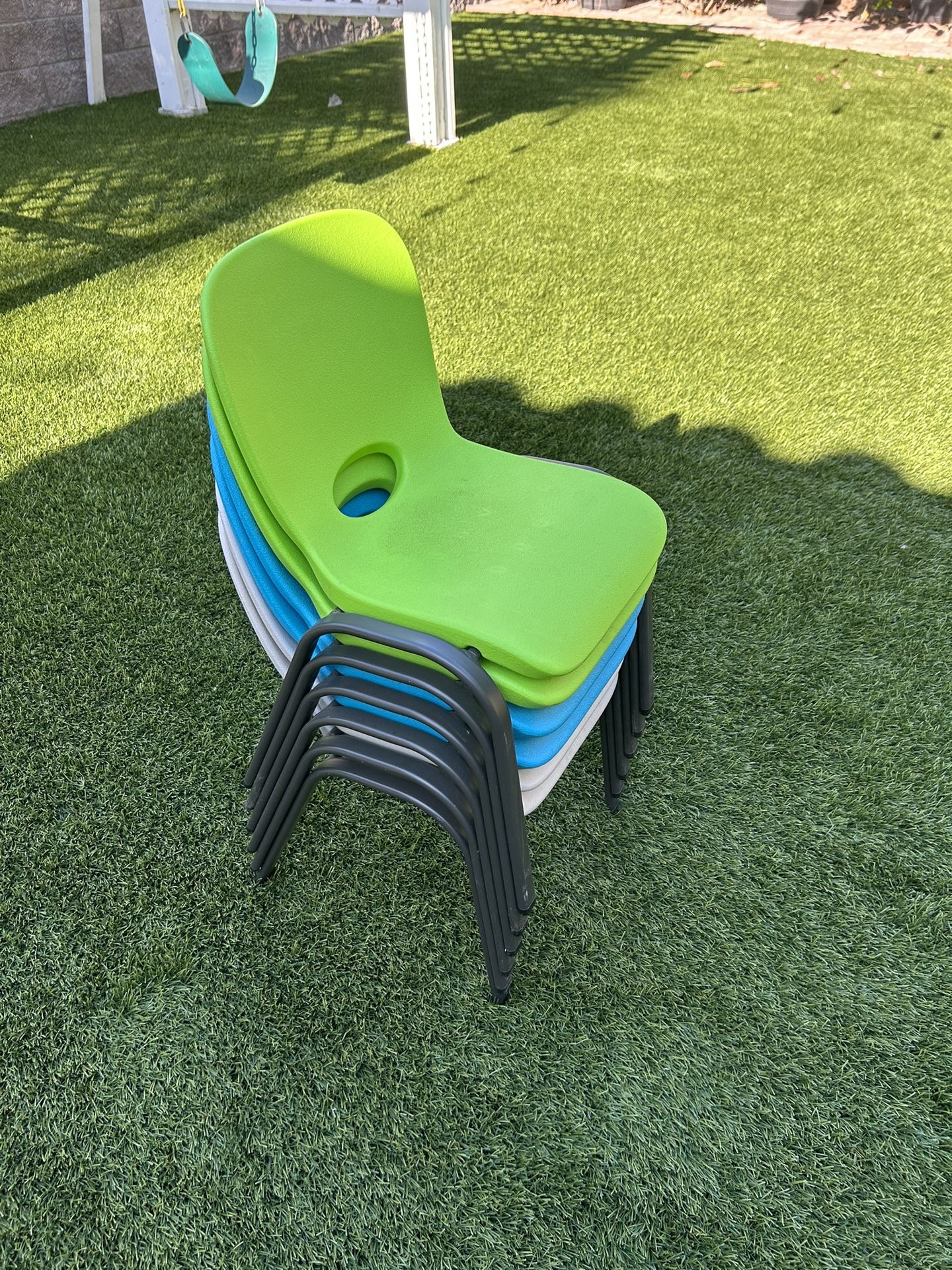Heavy duty chairs. Great for kids, daycare, or backyard — stackable and durable (Lifetime brand)”