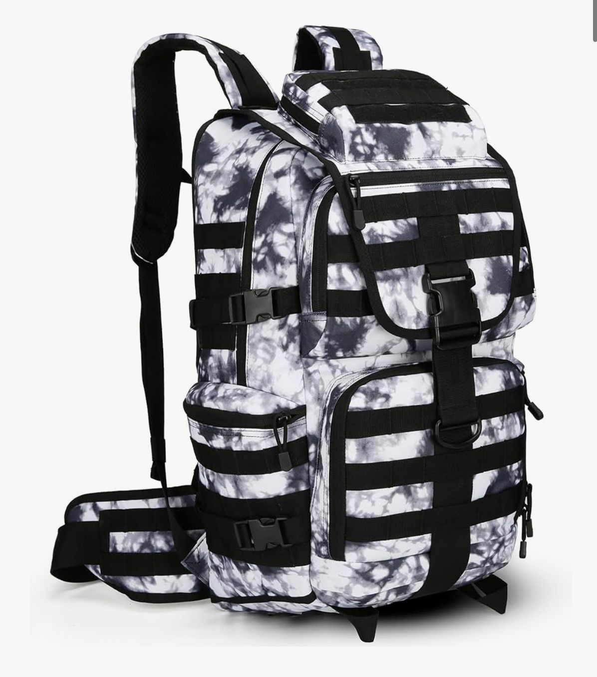 (Black white)50L Military Tactical Backpack Hiking Waterproof Backpack Large Military Pack 3 Day Assault Pack Molle Bag Rucksack