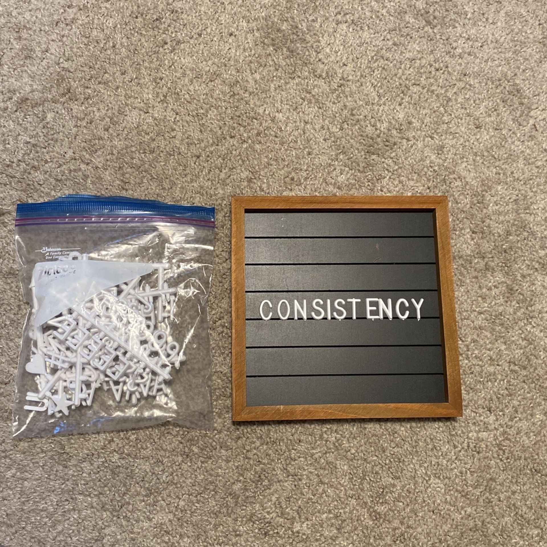 Perfect for table, desk, dresser or shelf. Comes with letters and numbers.