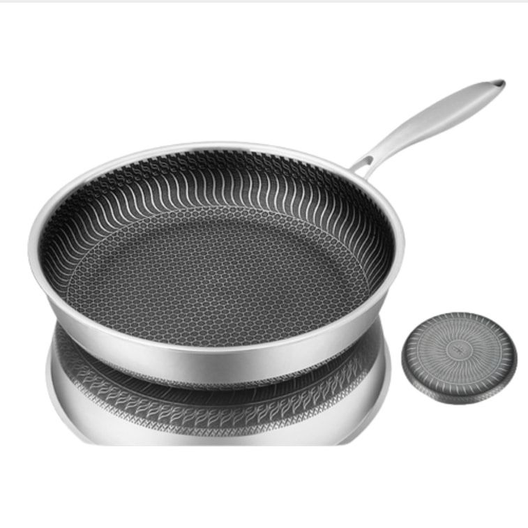 KATA Stainless Steel Frying Pan With Nano Titanium Non-Stick Tech Double Sided Honeycomb Light Smoke 26CM