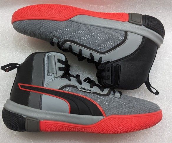 Puma Boys Legacy Disrupt 193817-01 Gray Red Basketball Shoes Lace Up Size 7C New