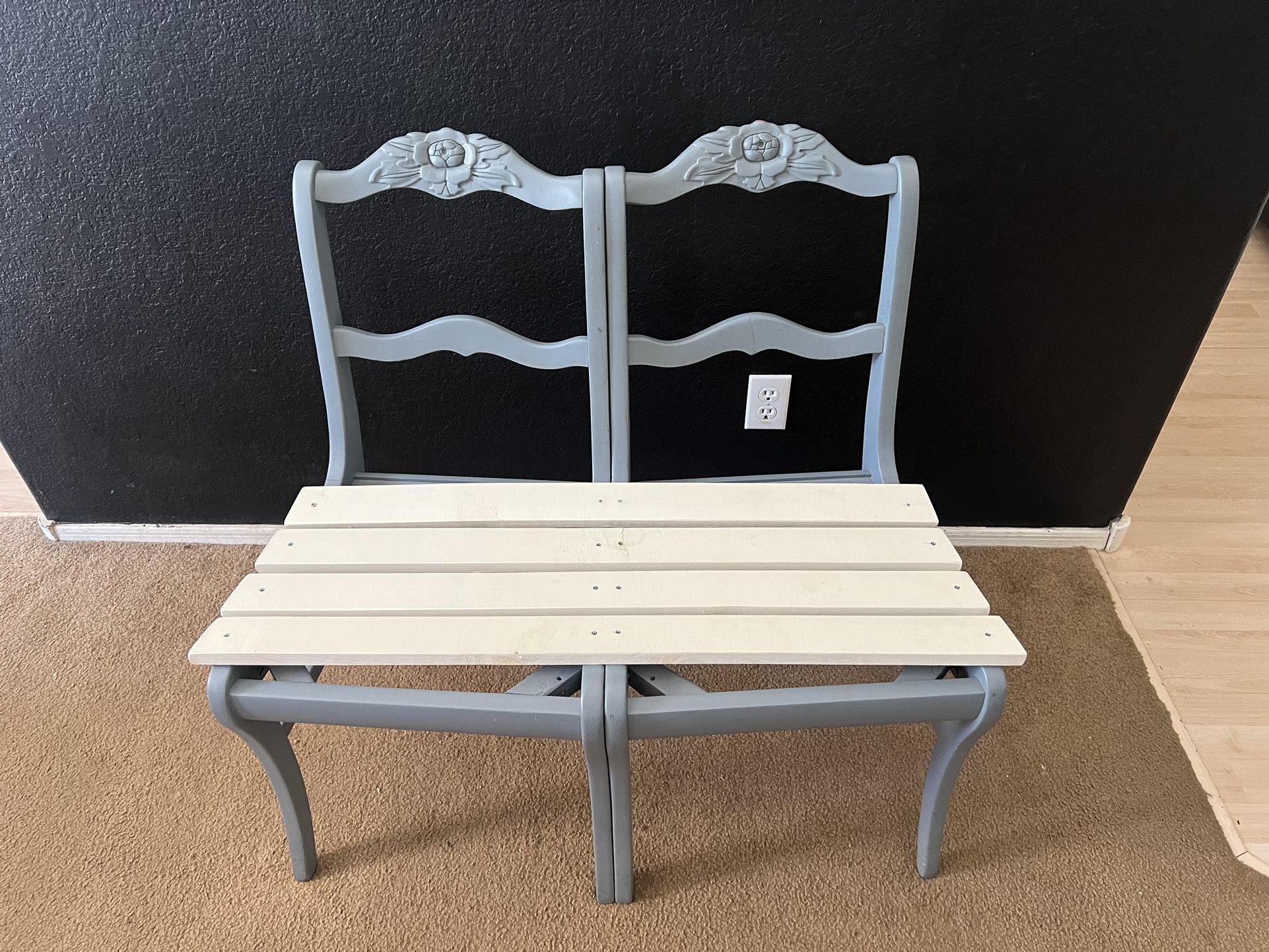 Gray and white double wood seat bench. $30 OBO