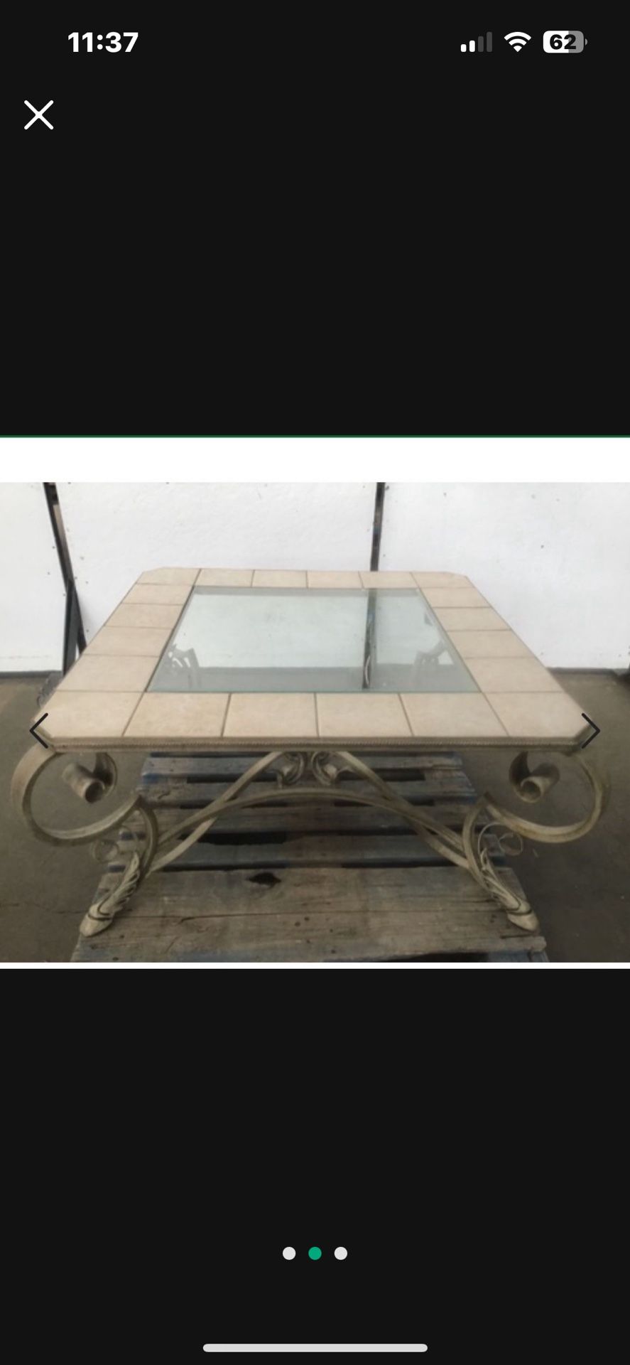 In Total three tables heavy iron cast 2 square coffee tables and one long table going b hind a sofa