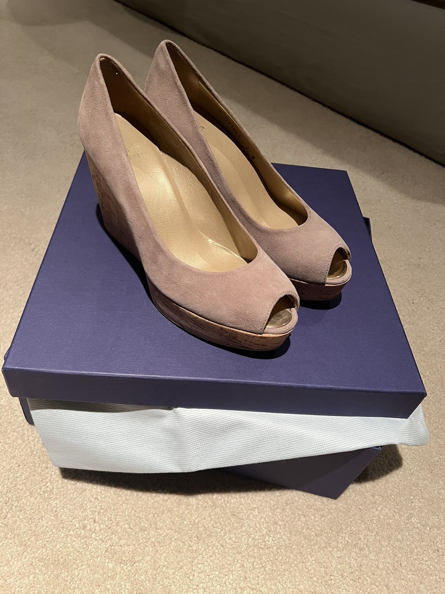 Stuart Weitzman cork wedge Suede Pump Size7