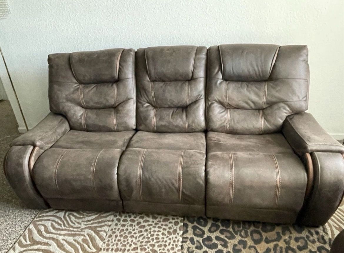 The sofa set is pristine condition; there has never been any spills or stains. Both the sofa and the chair have two stainless steel + retractable cupholders each. All recliners in the set can be extended farther than most for ultimate comfort and relaxation.