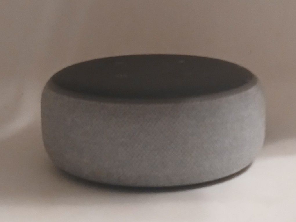 Amazon Echo Dot 3rd gen in grey. Works with Alexa for music, news, and smart home control. Great for any room.
