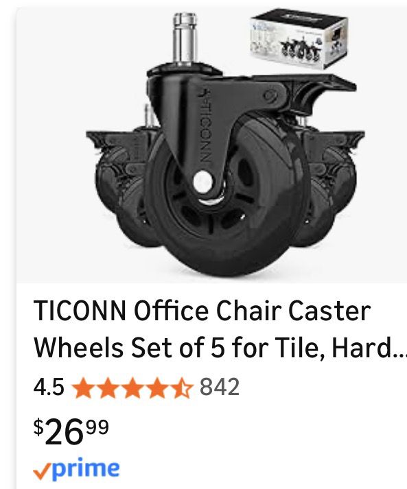BRAND NEW**Ticonn Gaming Black Rollerblade Office Chair Wheels with Brake