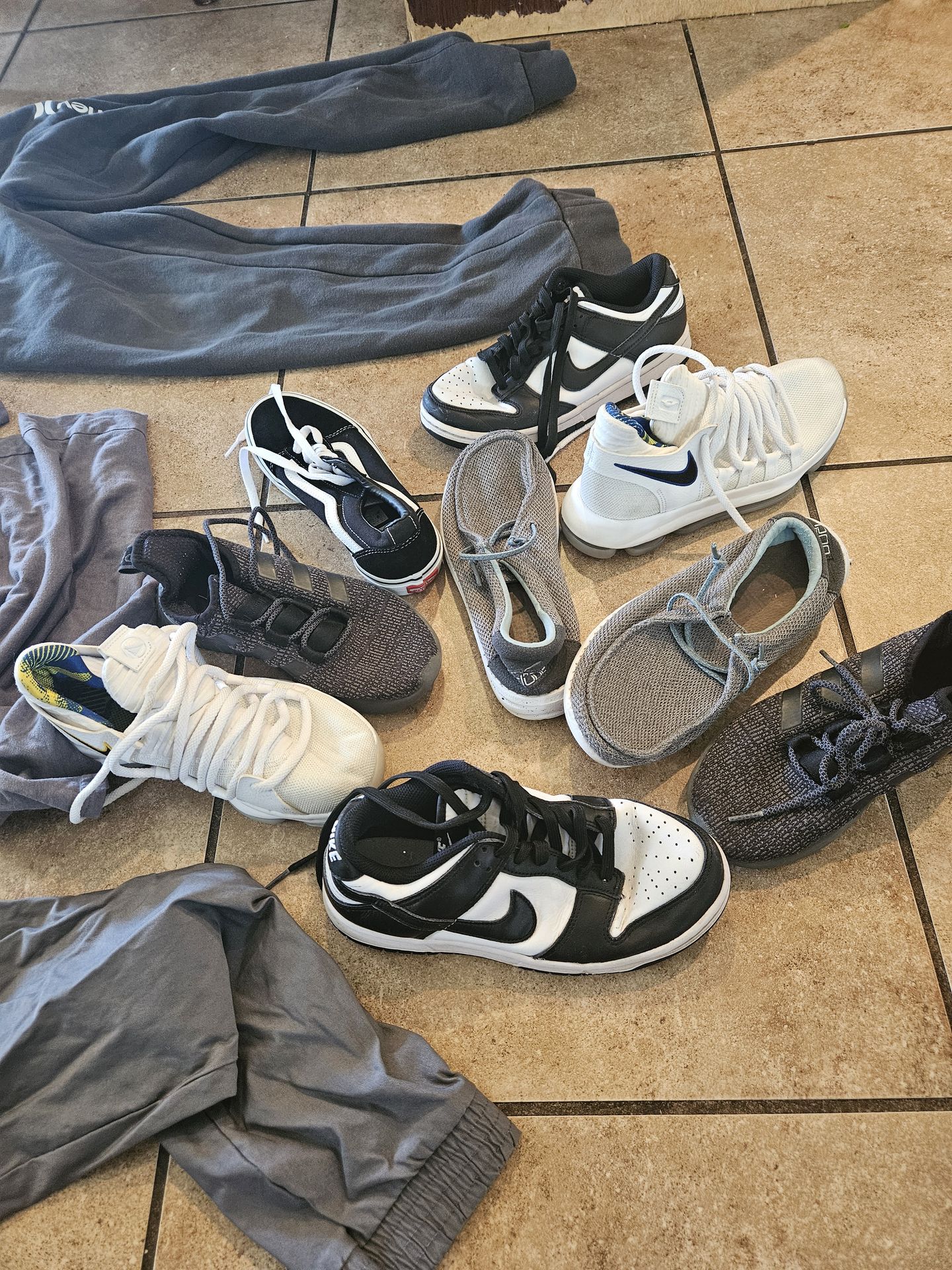 All nike pants are 10-12. A mix of other sizes. New vans just missing lace in one. Smoke in pet free. Pick up kavala ranch. All for $20