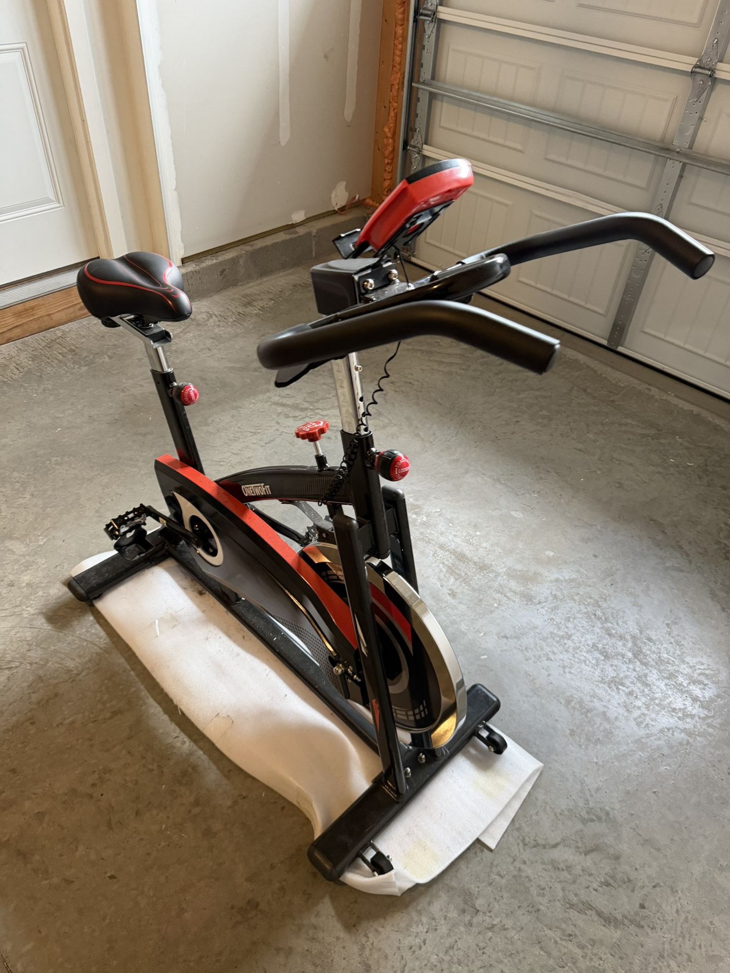 Indoor exercise bike in excellent condition, barely used. Perfect for home workouts, cardio, and staying active without going to the gym. Features: • Adjustable seat height for comfort • Adjustable resistance for different workout levels • Digital display (tracks time, speed, distance, calories) • Smooth and quiet ride • Compact design – great for garage or home use Bike is clean and fully functional. Selling because it’s no longer being used.