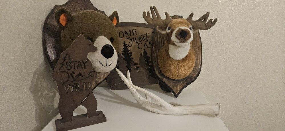 Selling these items all together. A camping or forest theme room will go perfect. The deer n the bear are custom made for a child's room.