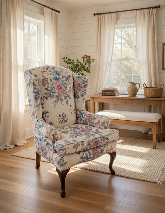 Elegant Floral Wingback Accent Chair (Free Delivery)