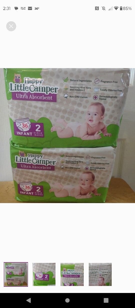 2 New Packs Of Happy Little Camper Size 2 Diapers