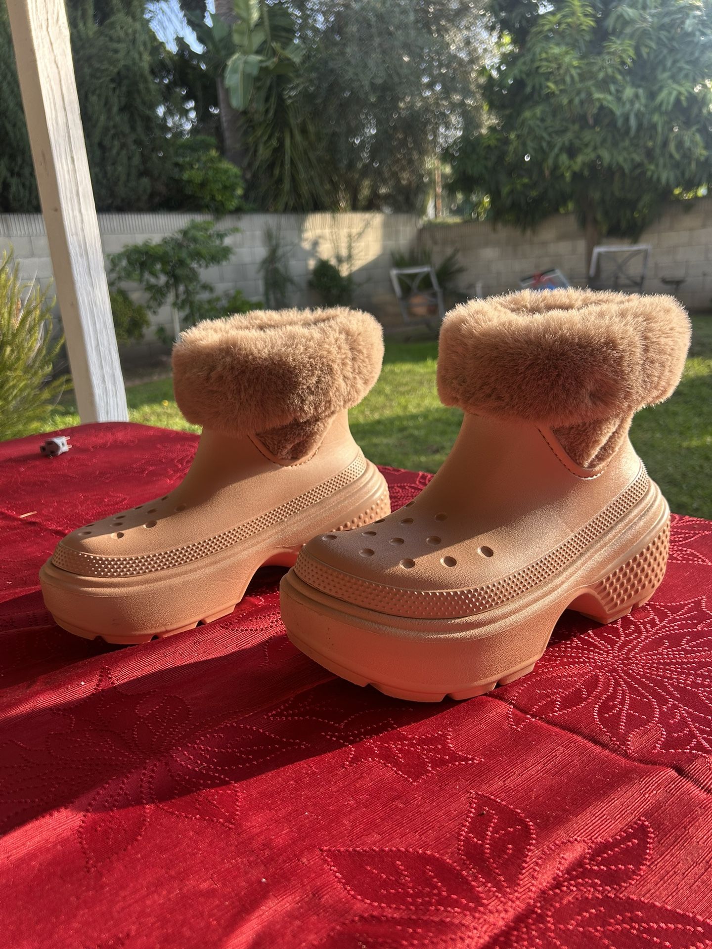NWT Crocs Stomp Lined Boot Shoes Womens Size 7 Faux Fur Lined Winter Clog Male size 5 Women size 7 Used only once still brand new any questions let me know