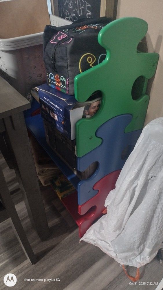 Green Blue and Red puzzle bookshelf 3 levels