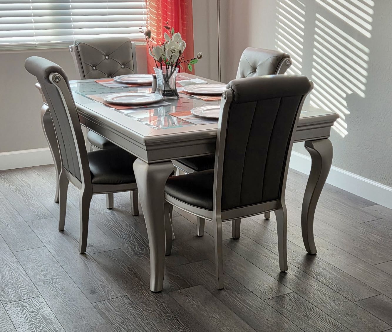 Dining table with 4 chairs in like new condition. Asking $380 size Height 31 inches,, Width 42 inches, Length 67 inches.