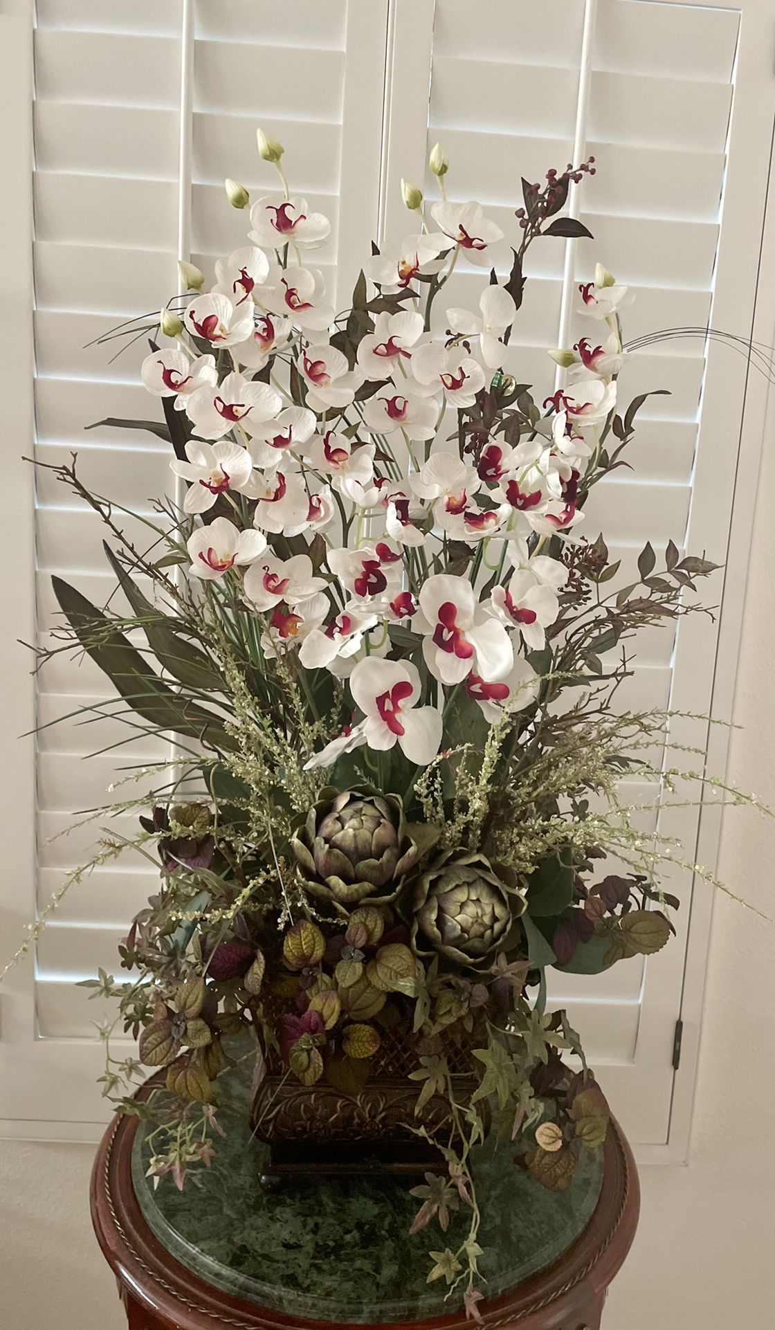 BEAUTIFUL FLOWER ARRANGEMENT BEAUTIFUL FLOWER POT, TOO. IT IS ABOUT 22 x 37 INCHES. PLEASE FEEL FREE TO ASK QUESTION.
