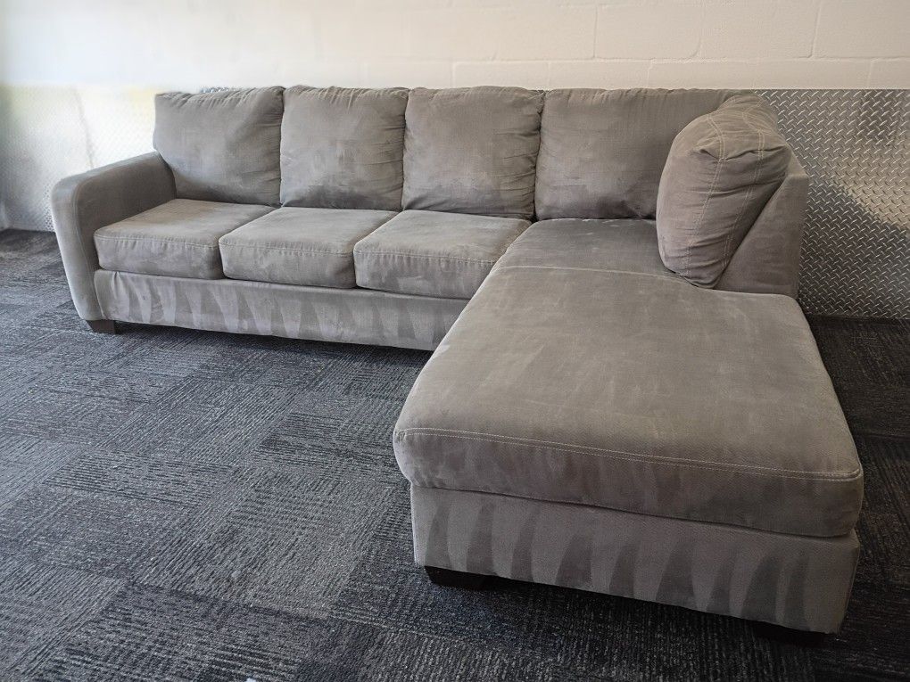 Free Delivery Today! Steam cleaned Gray Sectional Couch In Excellent Condition. No Stains Or Rips. Pet Free Sofa