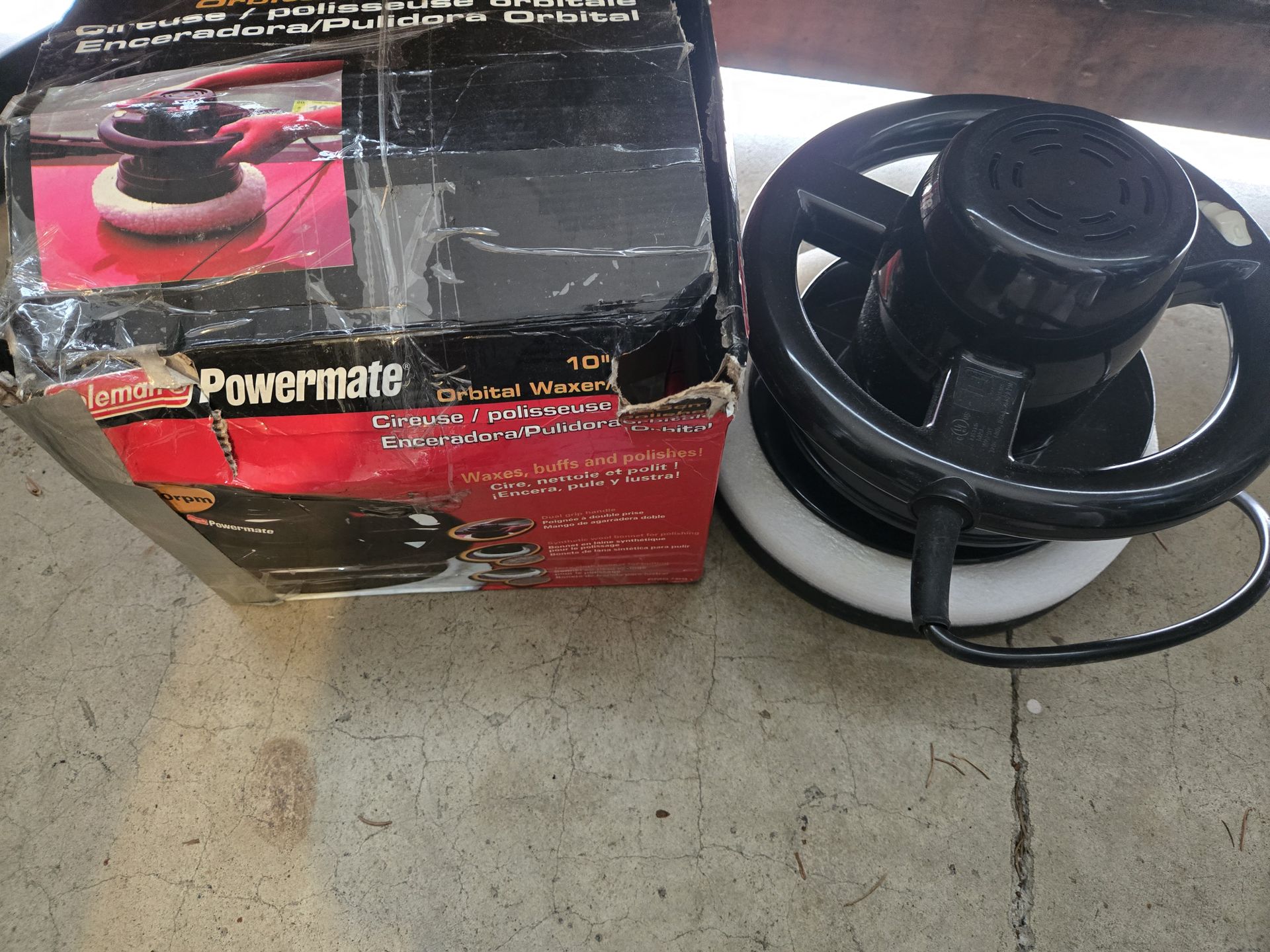 Powermate 10-inch orbital waxer/polisher in good working condition. Used but fully functional. Perfect for waxing, buffing, and polishing cars, trucks, boats, and more. 10” orbital pad Easy two-handle grip design Great for car detailing Comes with original box Clean and ready to use Shows normal wear from use but works perfectly.