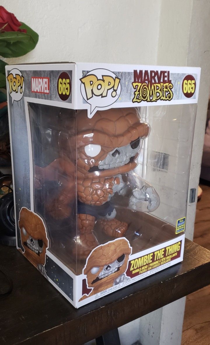 The Funko Pop! Marvel Zombies #665 Zombie The Thing is a 10-inch, limited edition, bobble-head vinyl figure released as a 2020 Summer Convention exclusive.