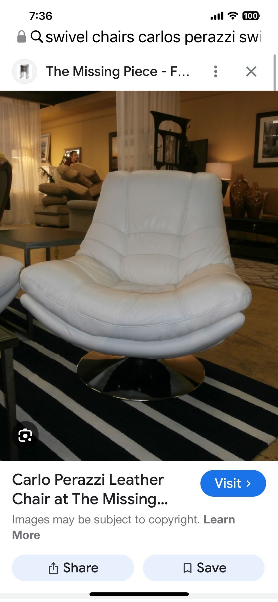 Stylish and comfortable Carlo Perazzi leather chair. A chrome base makes this piece stand out. Measures 35*35*38. Retails for $899 what a steal. The leather is peeling in the back of the chair, look at the pictures.