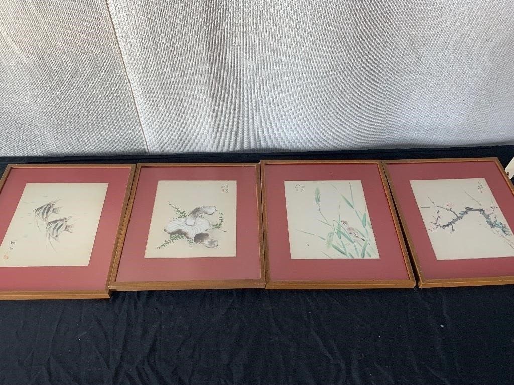 Chinese Art Fish, Mushrooms, Bird, Tree 17x15 inches each.