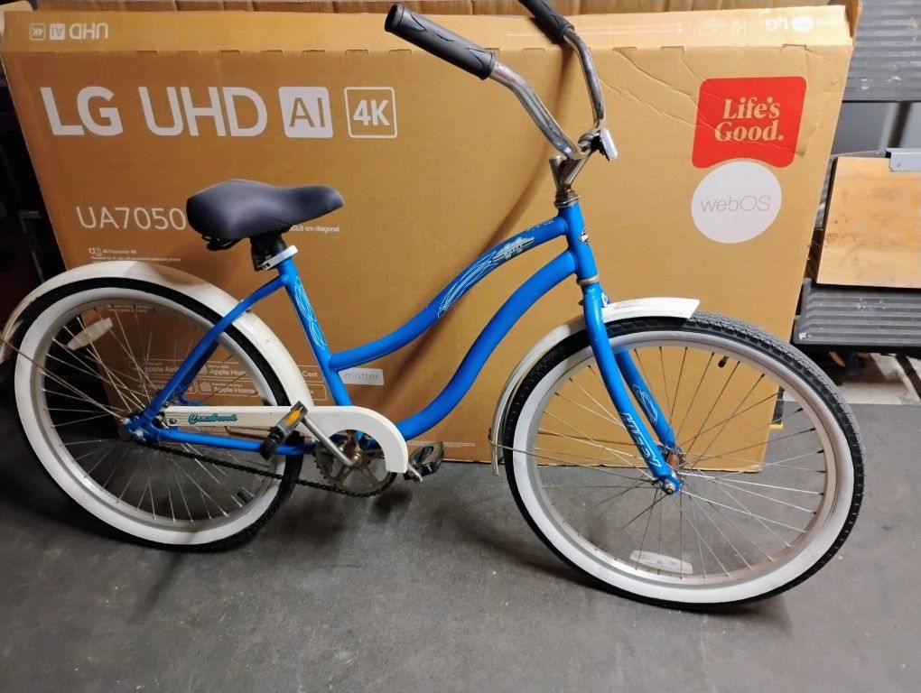 Classic Huffy Blue and White Beach Cruiser Bicycle