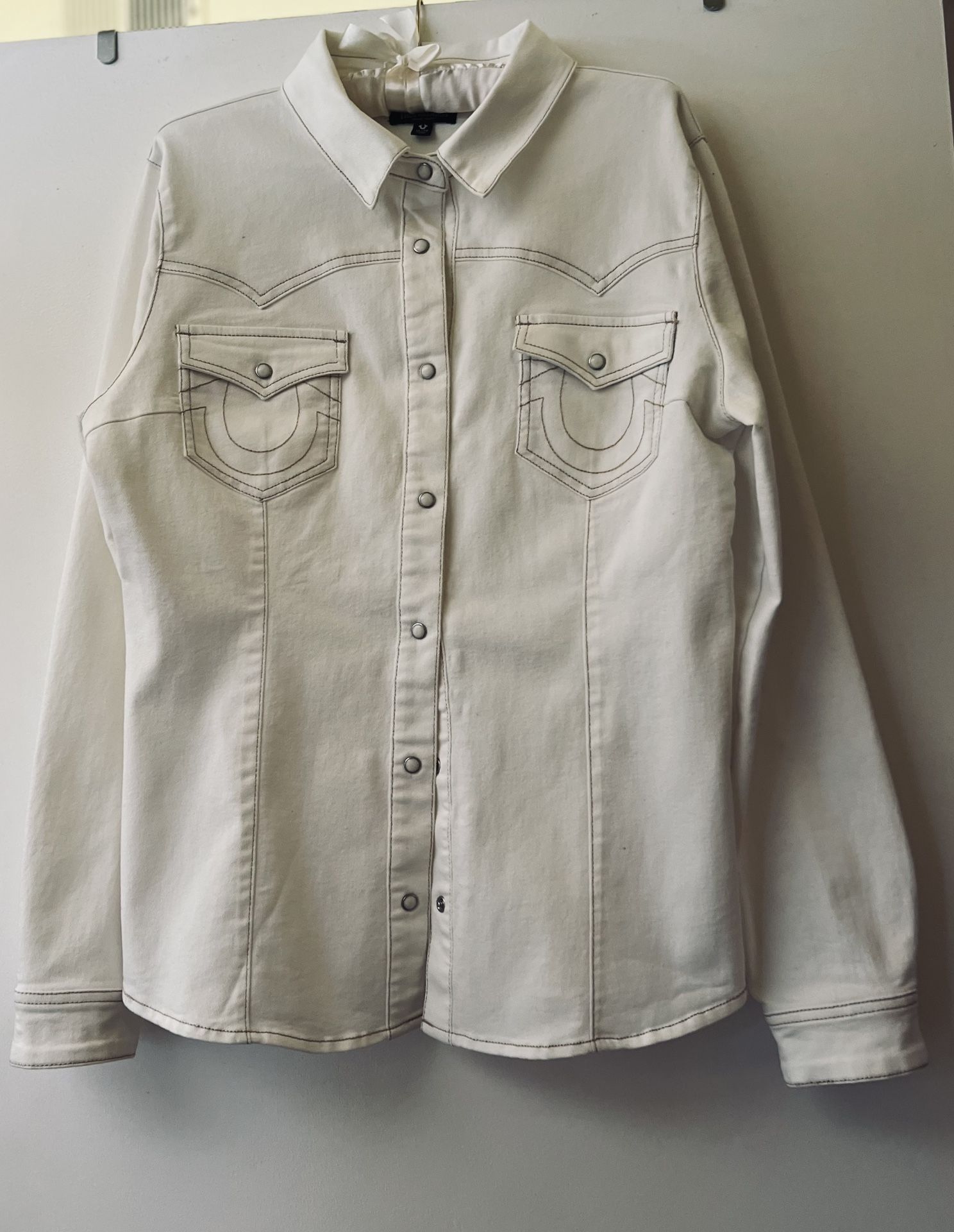 country True Religion jean brand, see pictures for size and condition. pearl/light beige color. stretchable fabric type. sunnymead ranch shell shopping center puck up. thank you