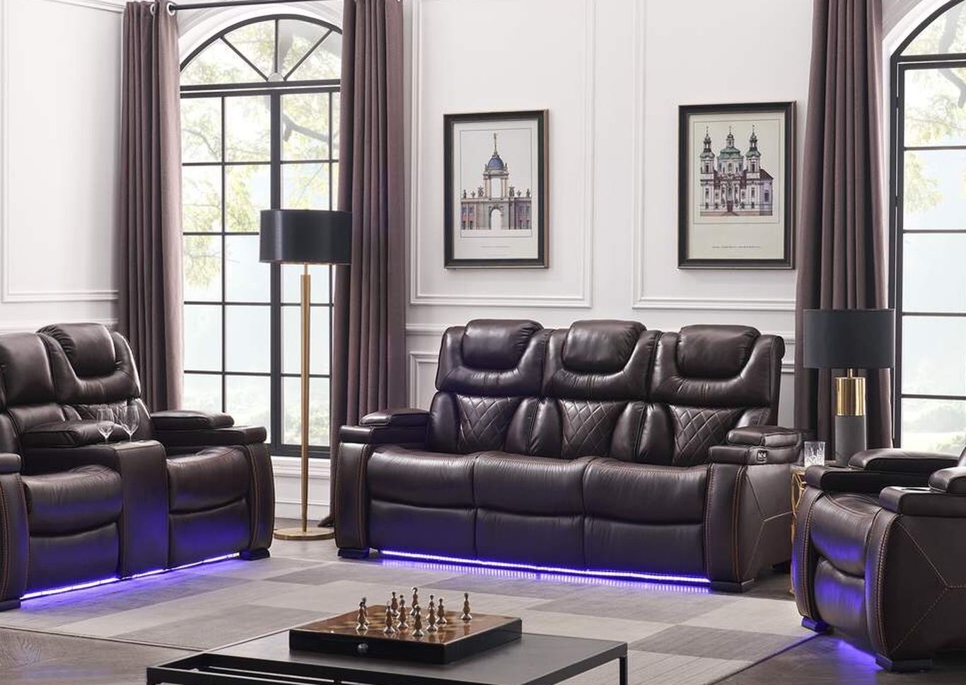 Power reclining sofa and love seat with adjustable headrest drop down table LED USB port ready for immediate delivery for $1 down no credit check financing