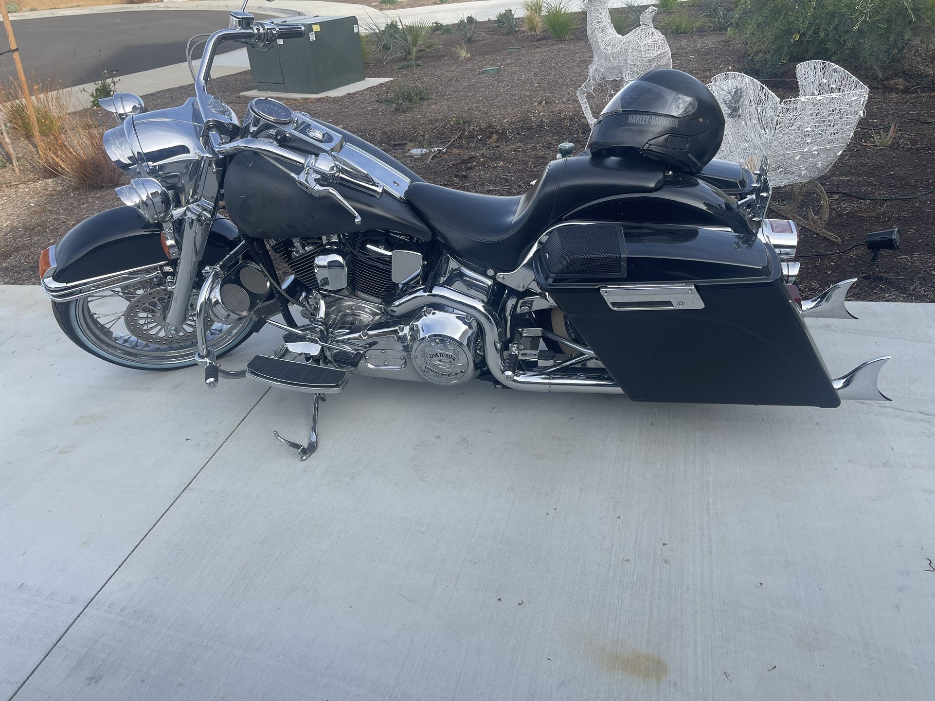 No time to ride bike has a lot of extras S&S lower 80 ‘engine case S&S carburetor 4 Chanel Rockford Fosgate amp, Bluetooth digital processor/equalizer( 2)6x9 speakers installed on top of saddlebags also 4 Polk audio speakers in a custom chrome enclosure, led headlights, Shotgun shocks, Chrome Samson fishtails exhaust.engine has low miles see speedometer pictured