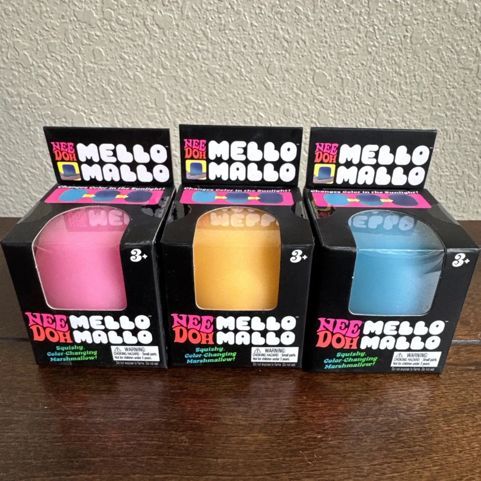 BRAND NEW AND SEALED. COLOR WILL BE RANDOMLY CHOSEN! The NeeDoh Mello Mallo Squishy Stress Fidget is a colorful marshmallow-shaped toy that changes color when squeezed. Made by the brand Schylling Nee Doh, these sensory squishy toys are designed to provide a fun and therapeutic experience for users. The pink, yellow, and blue colors add a vibrant touch to the toys, making them visually appealing as well. Perfect for those looking to relieve stress and fidget, these toys are sure to bring joy and entertainment to users of all ages.