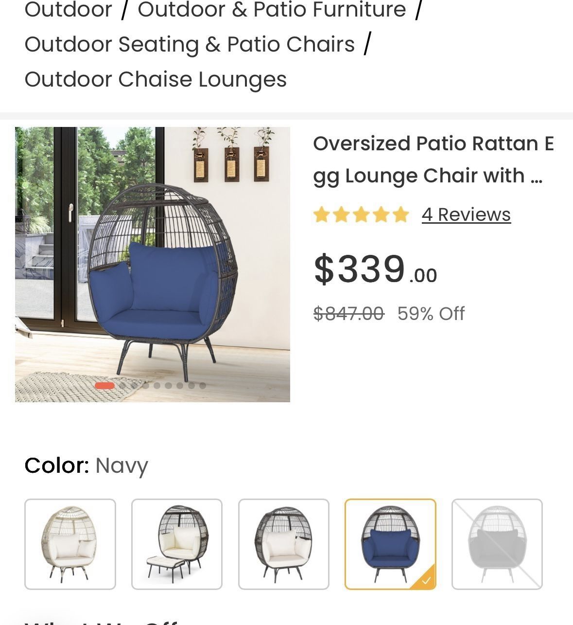 Costway Oversized Patio Rattan Egg Lounge Chair