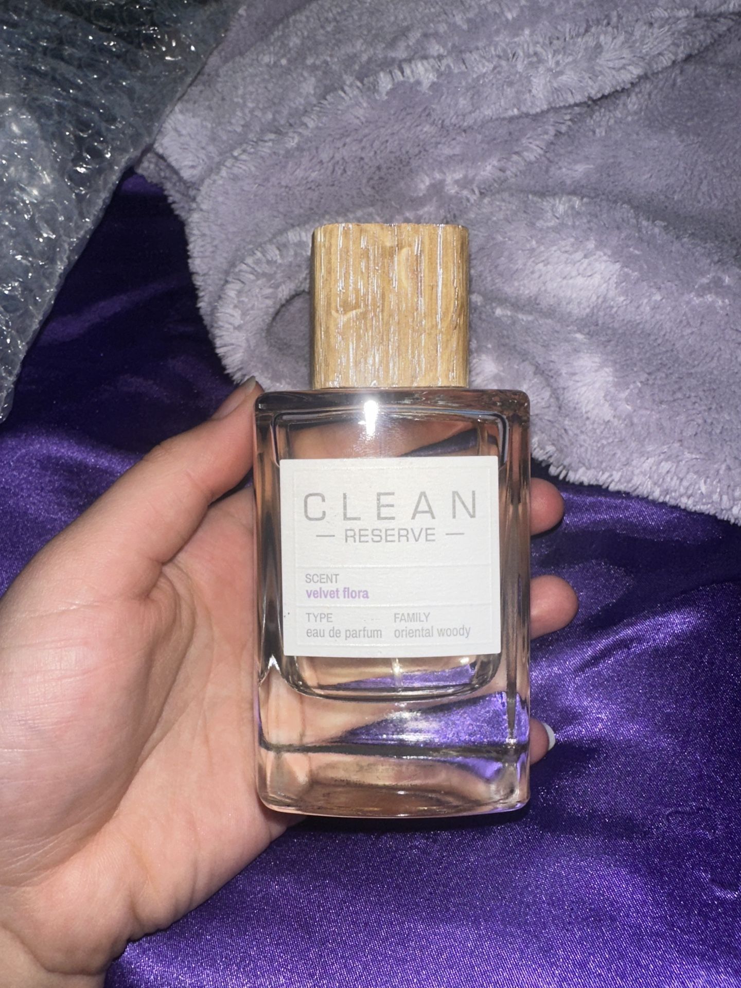 Clean Reserve Velvet Flora Eau de Parfum (3.4 oz). Scent Family: Oriental Woody Top Notes: Bergamot, Saffron Heart Notes: Jasmine, Lily, Cedarwood Base Notes: Musk, Patchouli, Amber This perfume is perfect for those who love a clean, floral fragrance with a woody depth—bold yet feminine. I’ve sprayed this once, it wasn’t for me. Open to offers! Retail value $110